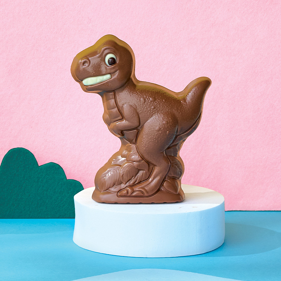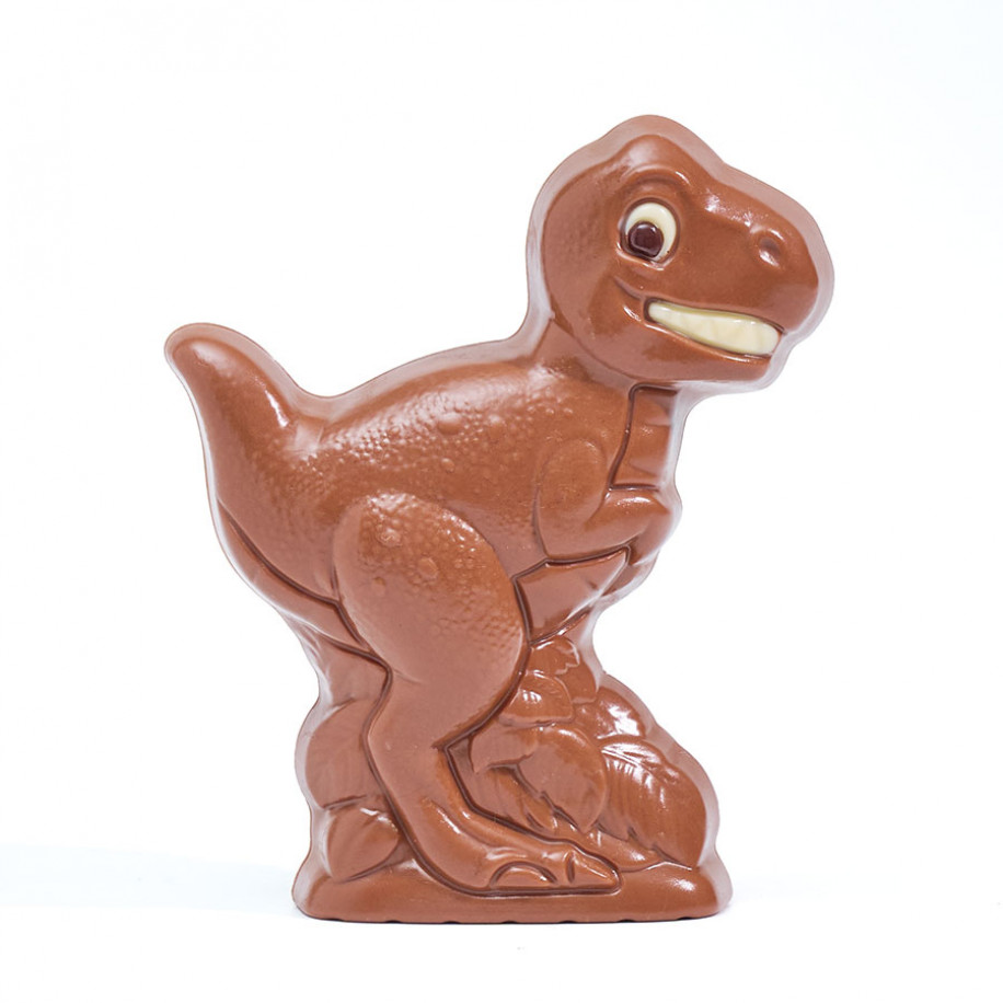 Moulage de 70 g au chocolat au lait décoré aux chocolats noir et blanc (H. 11 cm). Livré dans un sachet kraft décoré.
