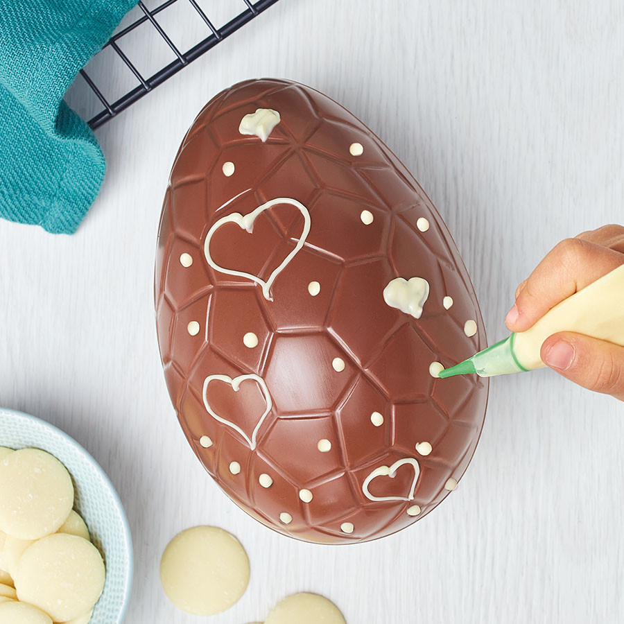 Composé d'un sachet de 30 g de chocolat blanc et d'une poche à douille en polyéthylène (21 x 12 cm).